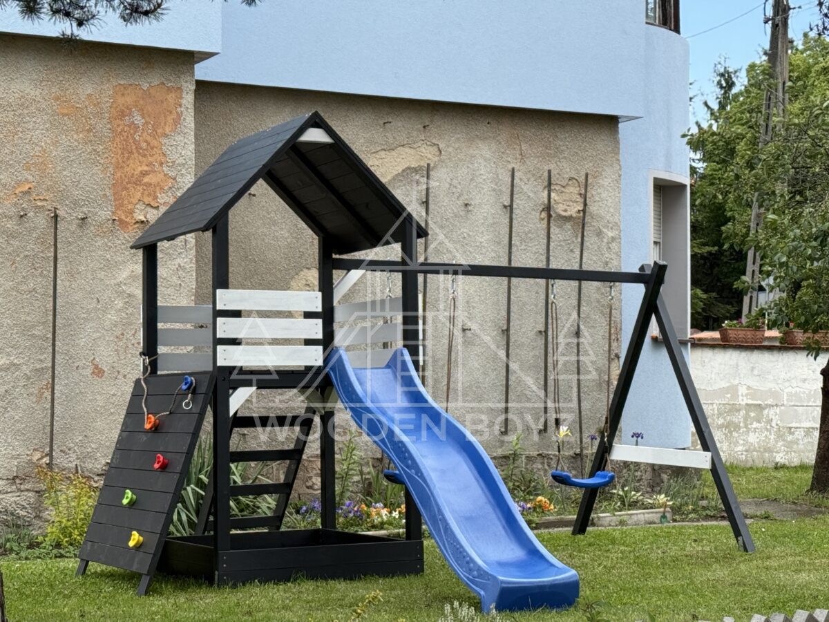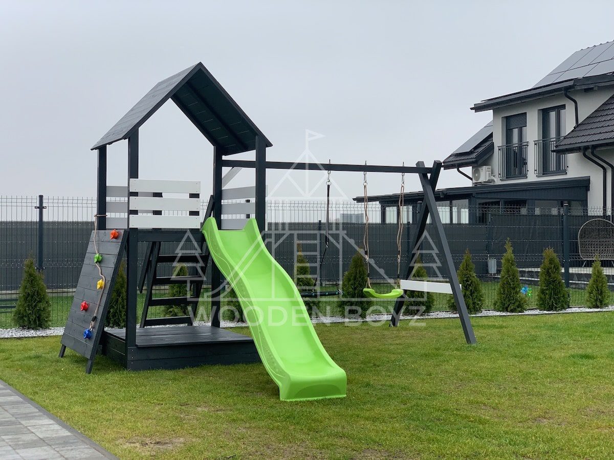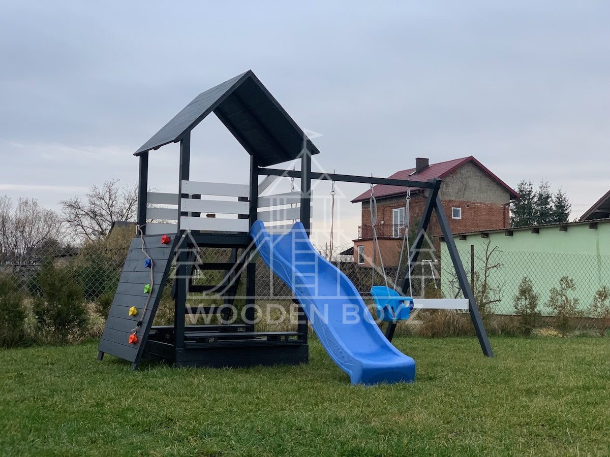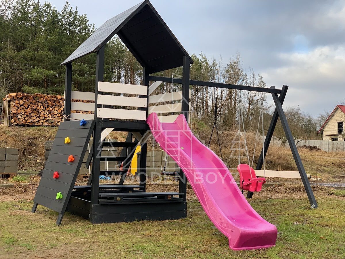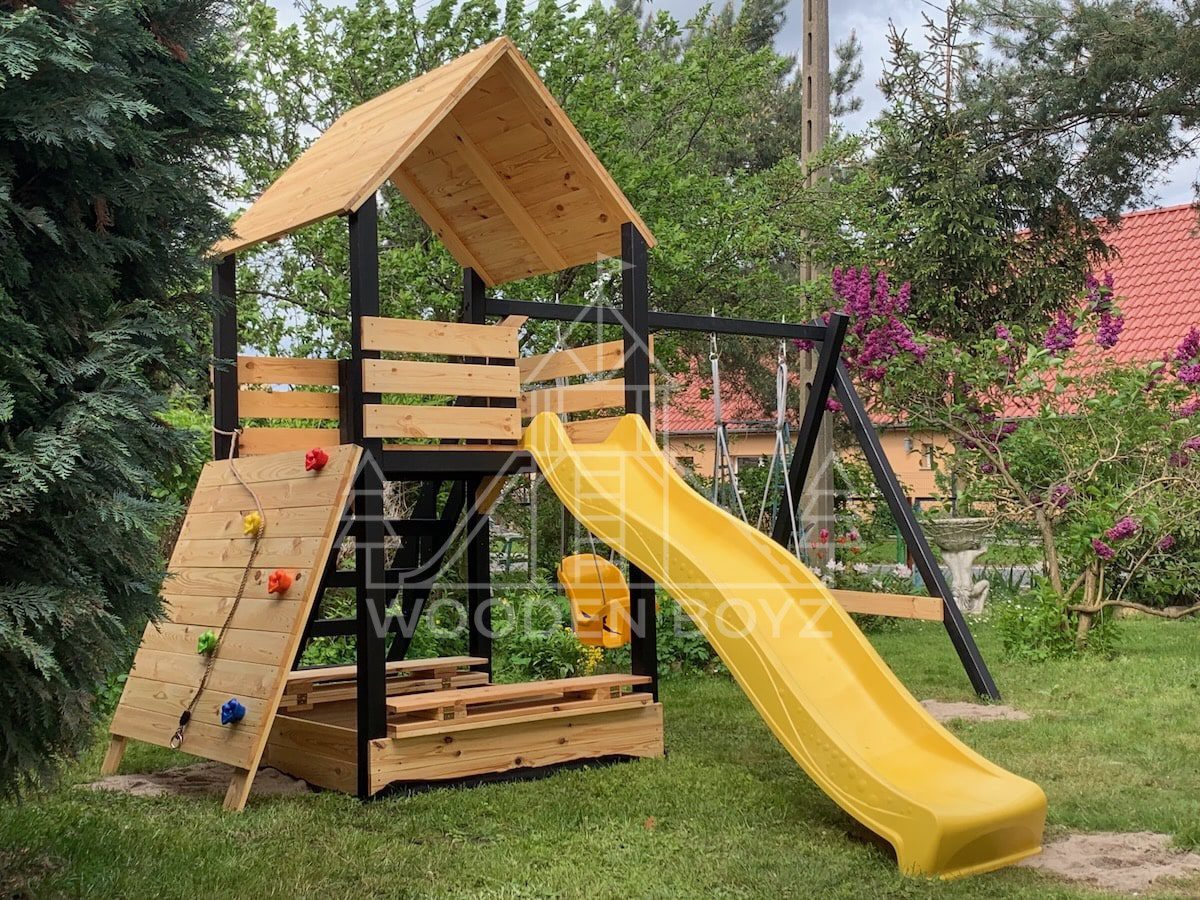 Der Spielplatz Gaja ist ein einzigartiger Ort zum Spielen und Entfalten, der fĂĽr eine unbeschwerte Kindheit geschaffen wurde. Er vereint drei Lieblingselemente jedes Kindes: Schaukeln zum unbeschwerten Schaukeln, eine sichere Rutsche und einen Sandkasten fĂĽr kreatives Spielen. Er ist aus hochwertigem, zertifiziertem C24-Kiefernholz gefertigt und der ideale Ort fĂĽr aktive Freizeitgestaltung im Freien.