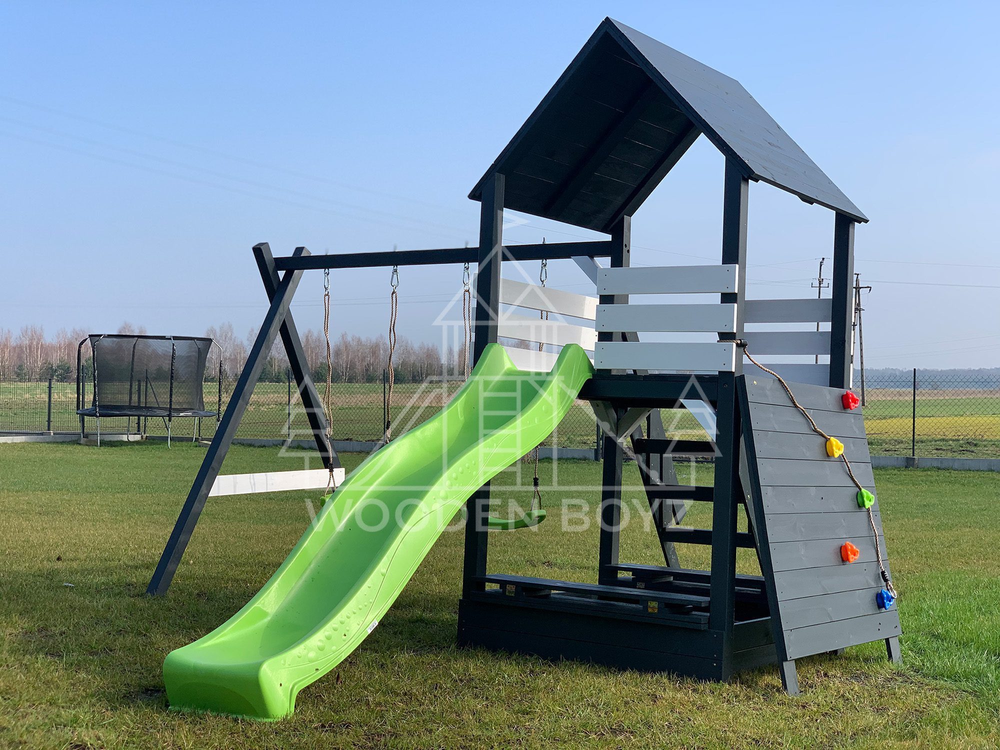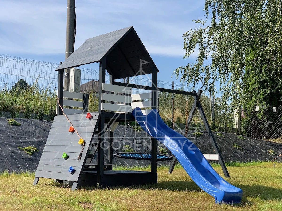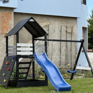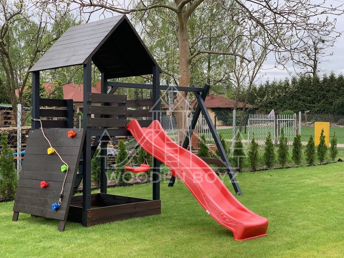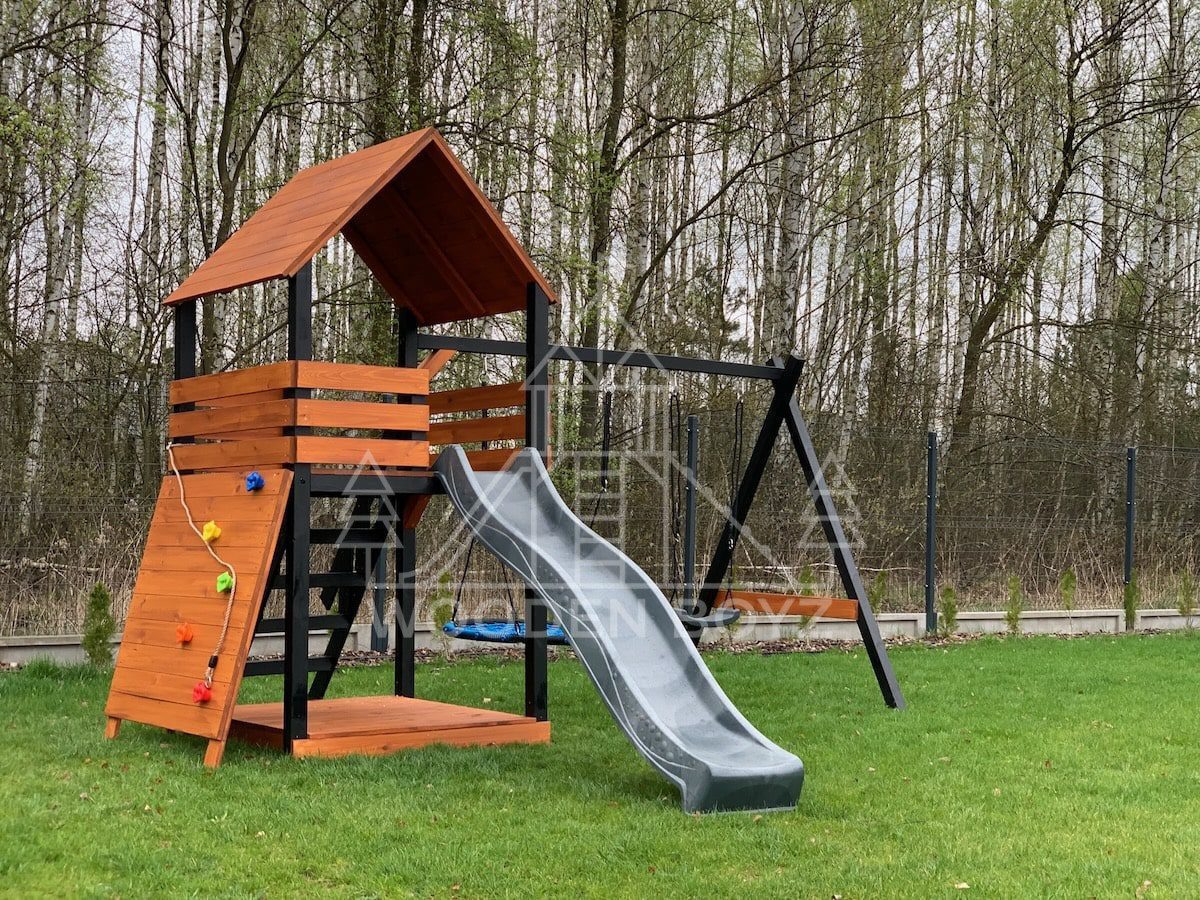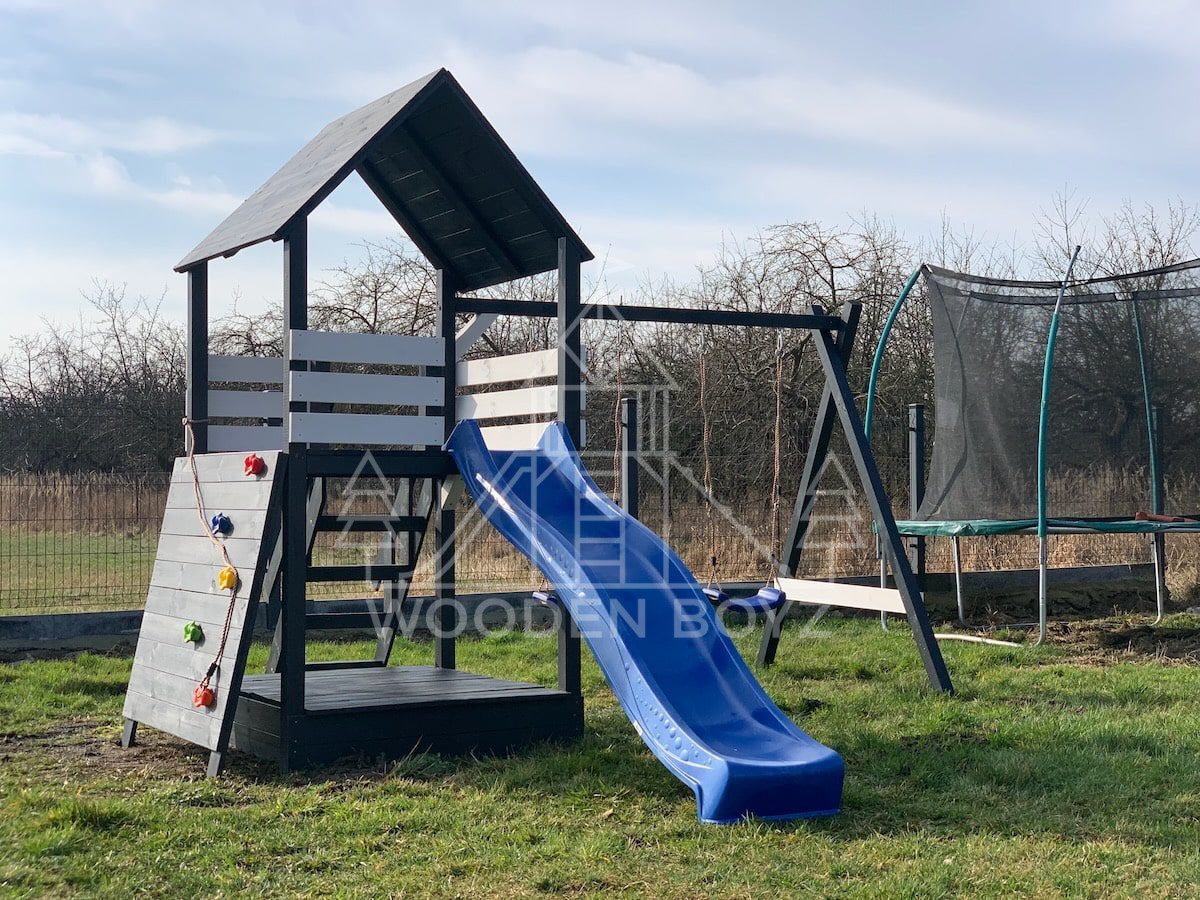 Der Spielplatz Gaja ist ein einzigartiger Ort zum Spielen und Entfalten, der fĂĽr eine unbeschwerte Kindheit geschaffen wurde. Er vereint drei Lieblingselemente jedes Kindes: Schaukeln zum unbeschwerten Schaukeln, eine sichere Rutsche und einen Sandkasten fĂĽr kreatives Spielen. Er ist aus hochwertigem, zertifiziertem C24-Kiefernholz gefertigt und der ideale Ort fĂĽr aktive Freizeitgestaltung im Freien.