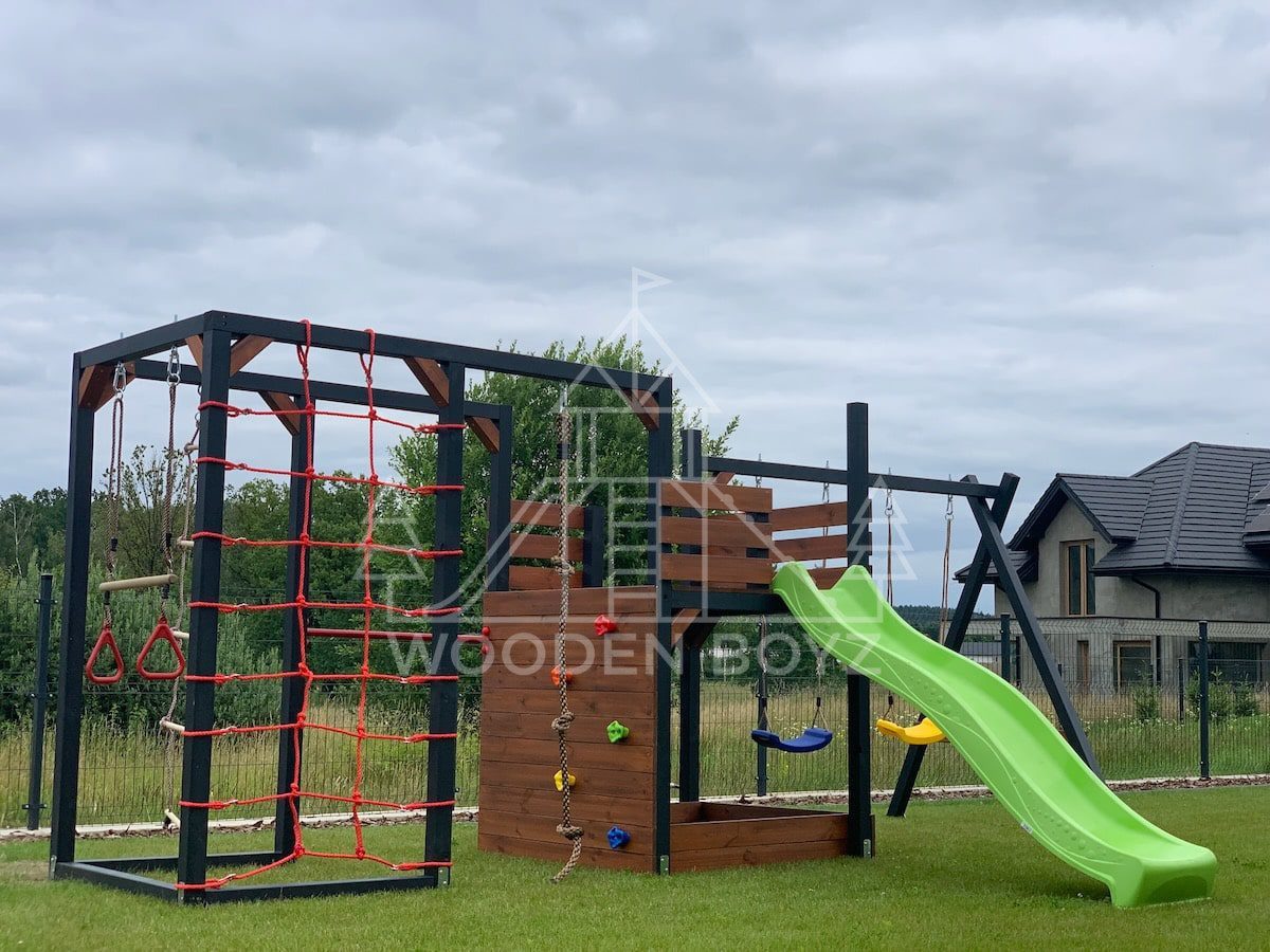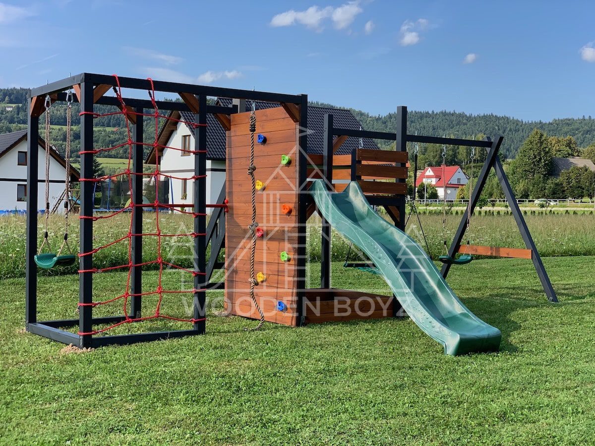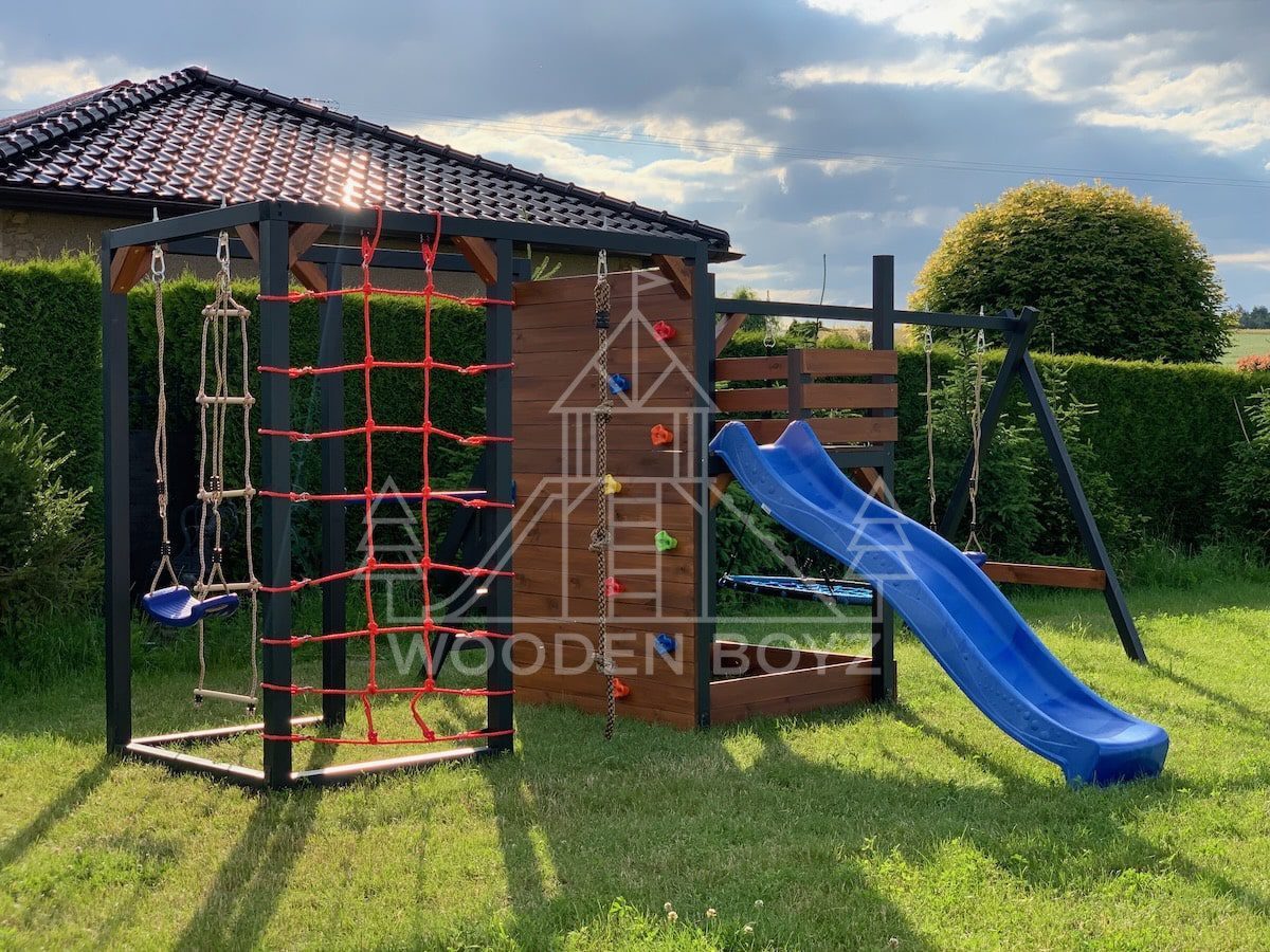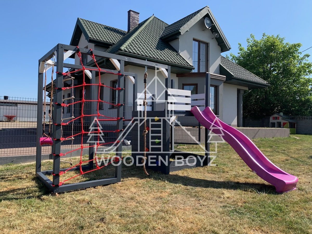 Das Modell Nela ist ein vielseitiger und ästhetischer Spielplatz, der jedem Kind den Traum vom eigenen Spielplatz erfüllt.