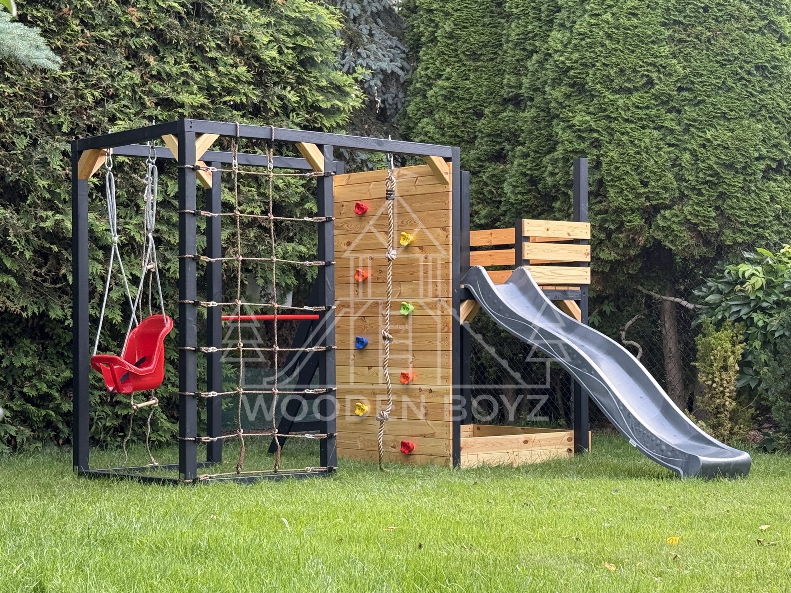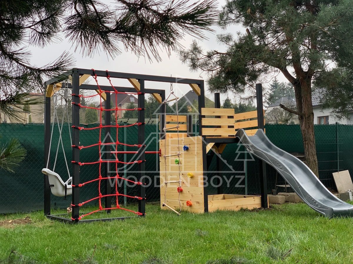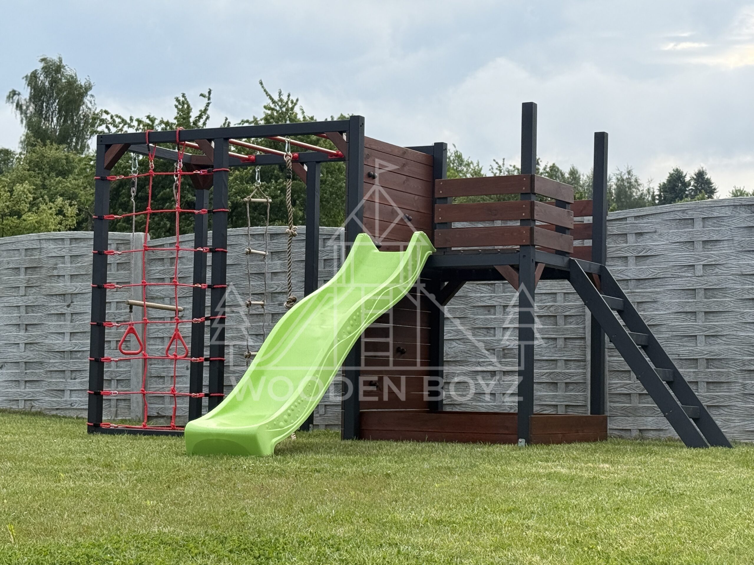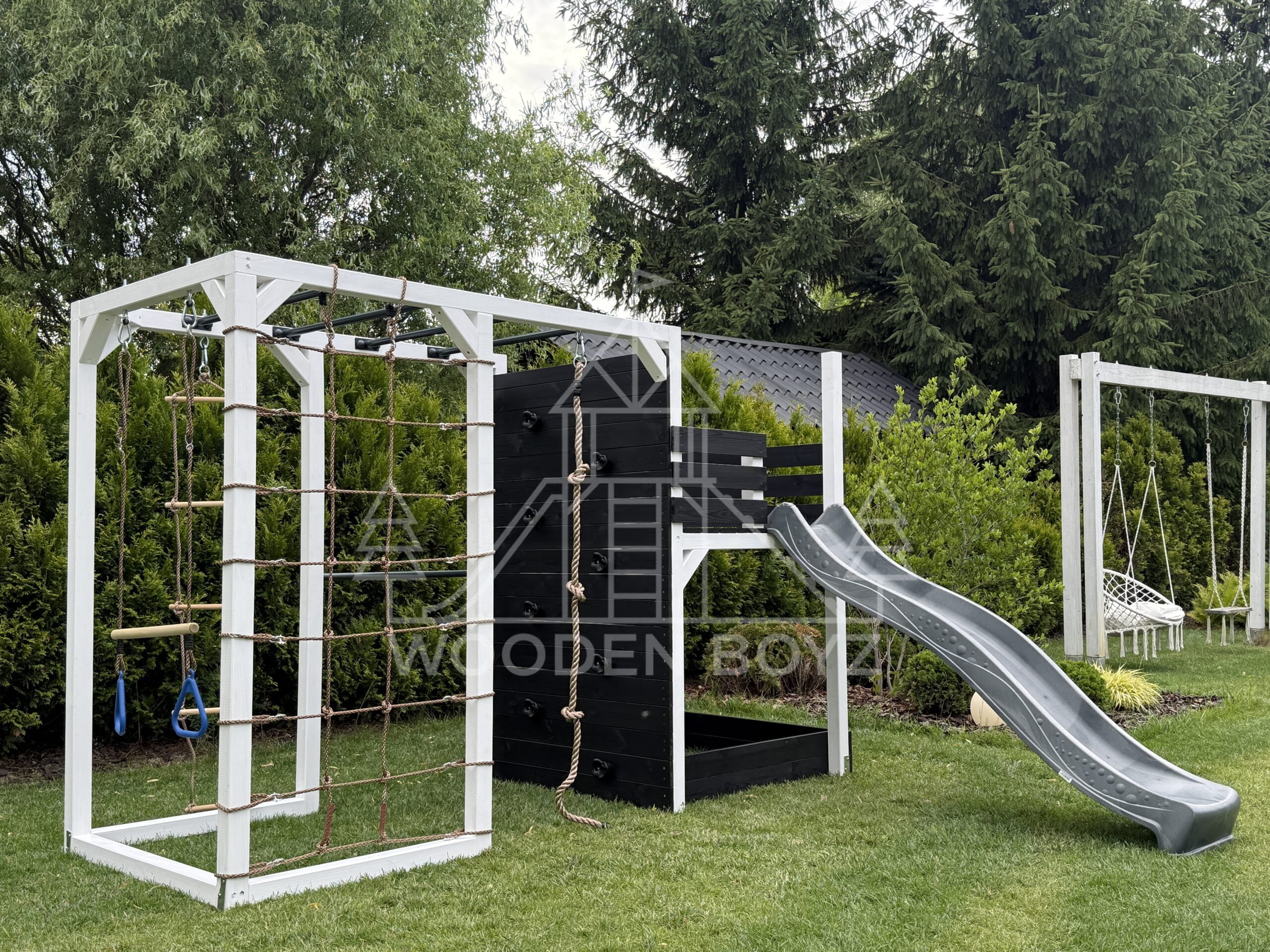 Das Modell Nela ist ein vielseitiger und ästhetischer Spielplatz, der jedem Kind den Traum vom eigenen Spielplatz erfüllt.