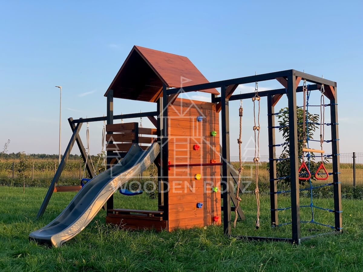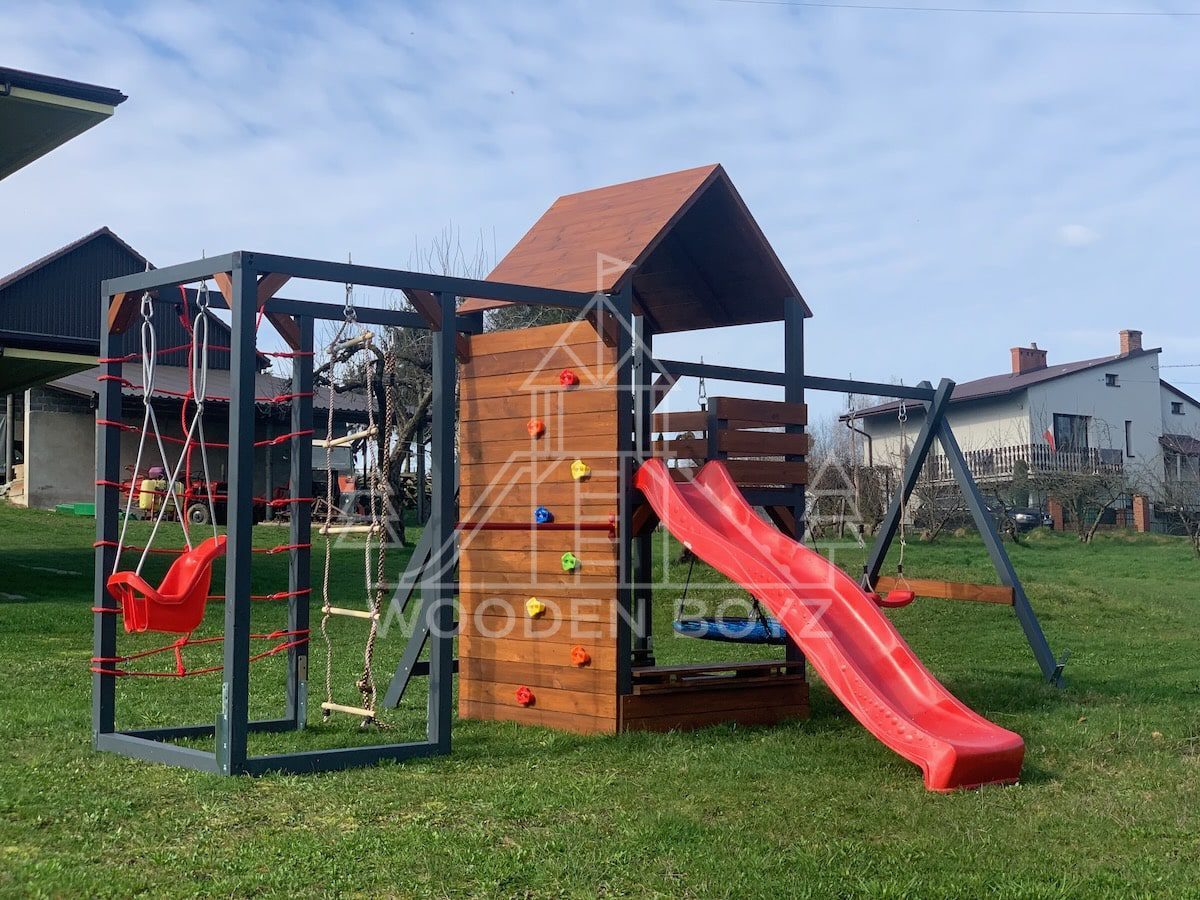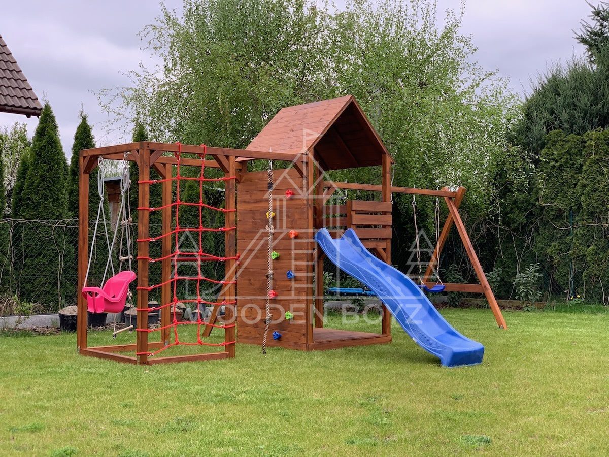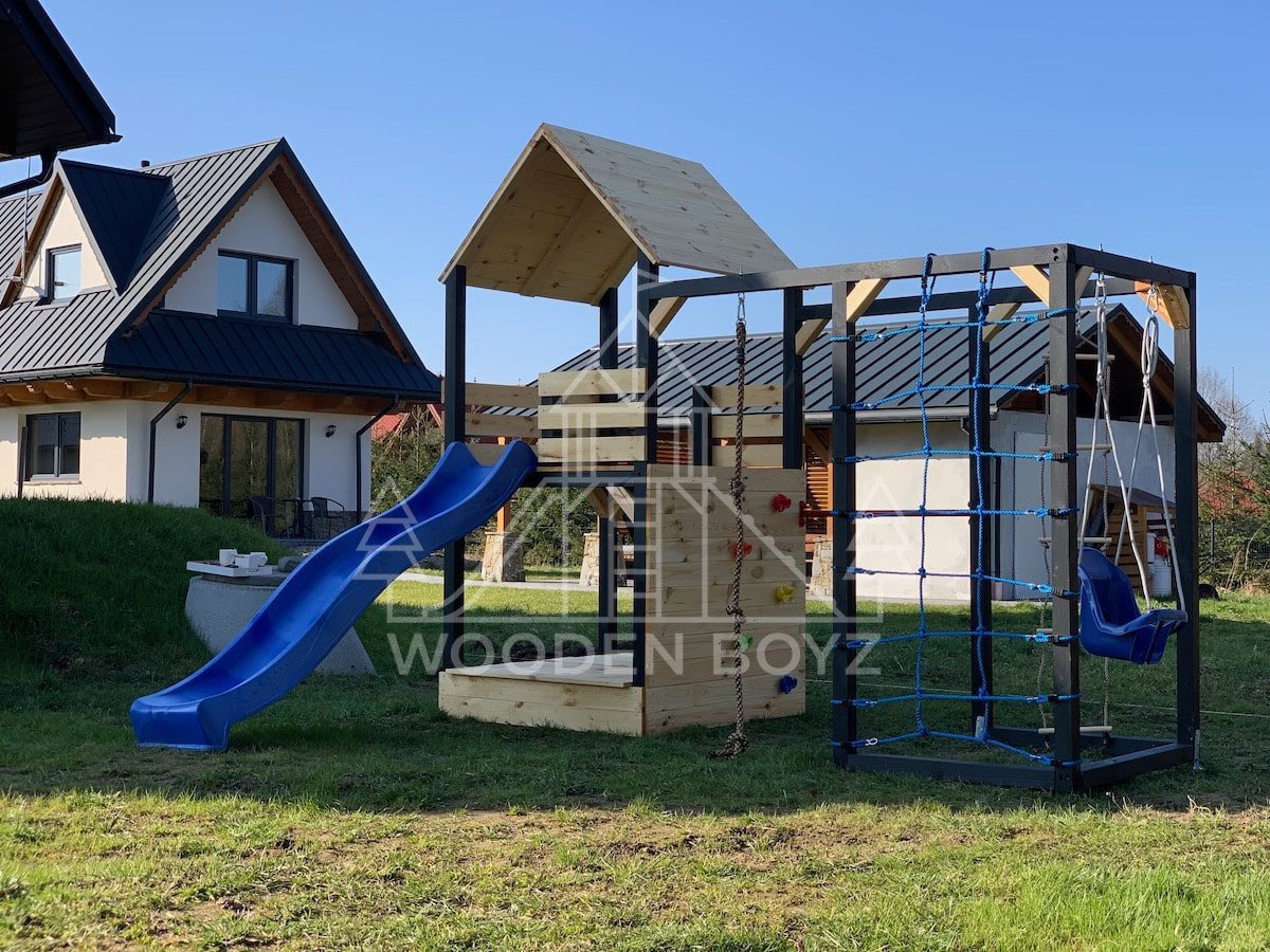 Der Spielplatz Zosia ist ein einzigartiger Ort für Spiel und Bewegung, der Ihren Garten in ein wahres Abenteuerland für Kinder verwandelt. Durch die Kombination aus Klettergerüst und Kletterturm bietet er kleinen Entdeckern unbegrenzte Spiel- und Entwicklungsmöglichkeiten. Hier können Kinder unter der Aufsicht ihrer Eltern sicher klettern, schaukeln, rutschen und ihre körperliche Fitness entwickeln.