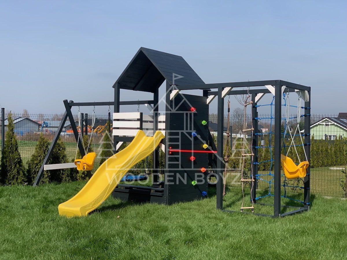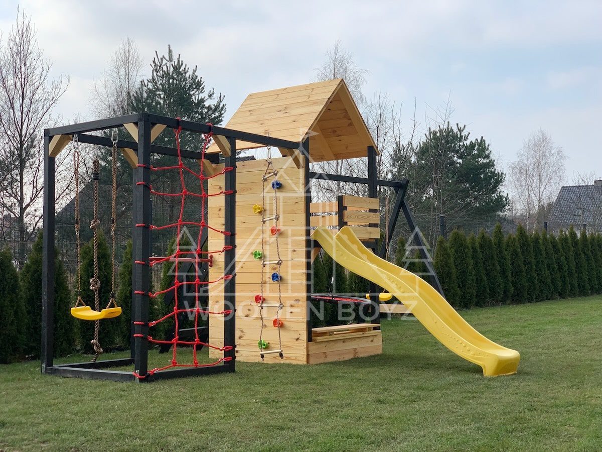 Ja, Sie können einen Satz oberer Reckstangen (+500 zł) hinzufügen oder statt der Schaukel eine vertikale Stangenwand wählen (+500 zł).